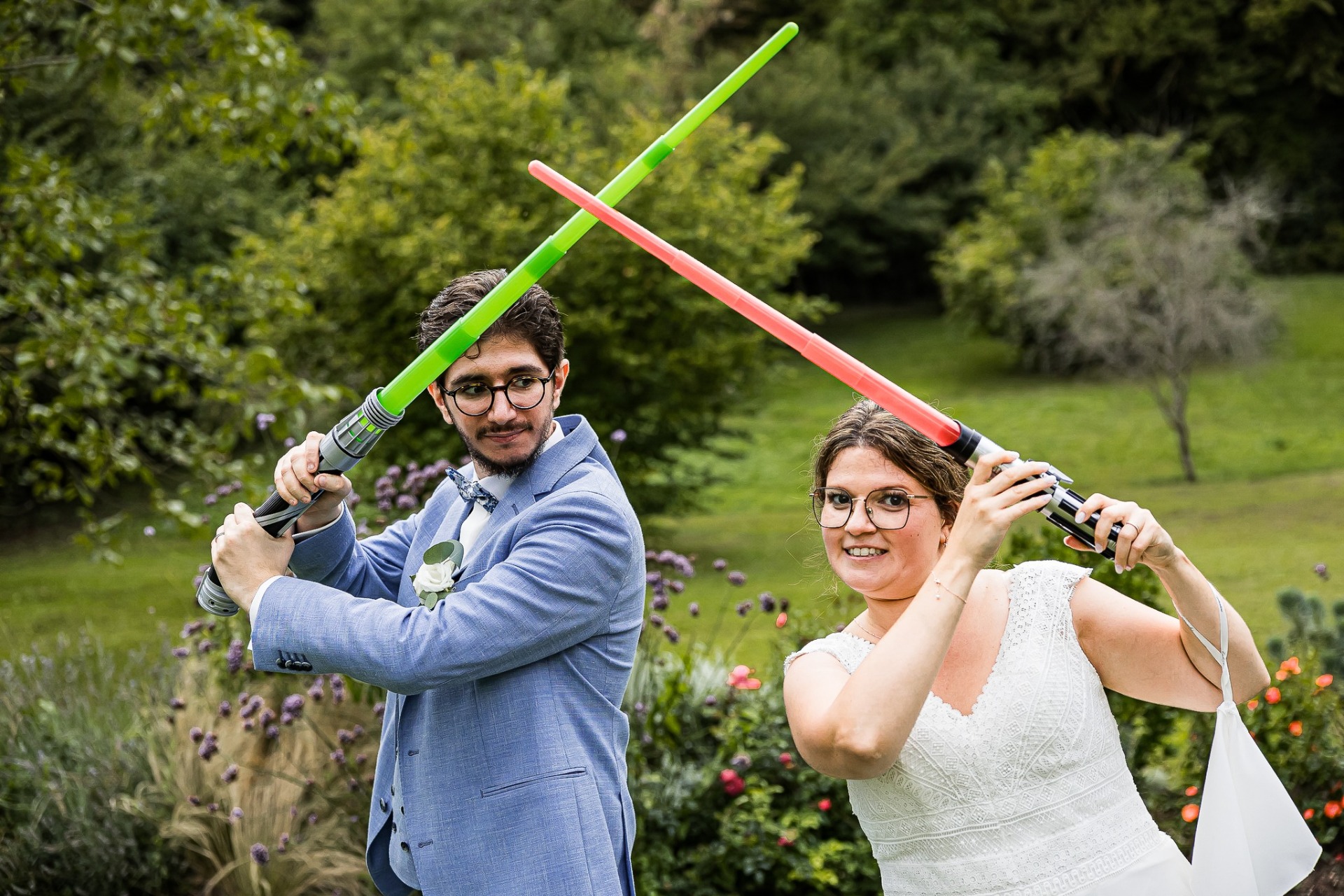 Cette année, pour un bon tiers de mes Mariages, la classique cérémonie civile avait déjà été faite bien auparavant, toute la prestation principale se déroulant alors directement sur le lieu de réception. Ce sera encore le cas sur 2 de mes 4 Mariages restants à venir ce mois-ci, et c'était le cas aussi ce 16 septembre. C'est le schéma que je préfère puisque c'est généralement moins la course pour les Mariés qui profitent davantage, même si pour ma part à l'inverse je fais sûrement le double de kilomètres à pieds dans la journée à me balader sans cesse partout ! Le terme de reportage prend en effet tout son sens ici car il y a dans ce contexte encore plus de choses spontanées à capter en continu; j'adore. Concernant Audrey & Willy, je vous avais prévenu par ailleurs la veille de leur Mariage que leur douce folie était assurément à la hauteur de la mienne, que cela allait faire des étincelles 15 heures durant à leurs côtés sur le Domaine des 3 Voyages... Les étincelles ont finalement donné lieu à une véritable explosion créative, en résulte une galerie comptant désormais parmi les plus grandes à mon actif (seul du moins, je ne compte pas les dates couvertes en binôme avec ma chérie cette saison). Mais en découvrant là quelques unes de leurs photos de couple pas comme les autres, vous saisirez sans doute vite pourquoi mes boîtiers ont bien turbiné ce jour-là !! Bref, plus on est de fous, plus on rit...et plus il y a d'incroyables images à la clé. Vous aussi êtes totalement barrés et recherchez un Photographe qui l'est tout autant pour vous suivre dans vos délires l'an prochain ou en 2025 ? C'est le moment, puis dernière chance pour 2024, mon agenda étant quasi bouclé désormais...